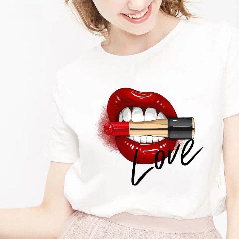 Camiseta Tee Shirts Female T-Shirt Koszulki Damskie Harajuku Tshirt Lip Lipstick