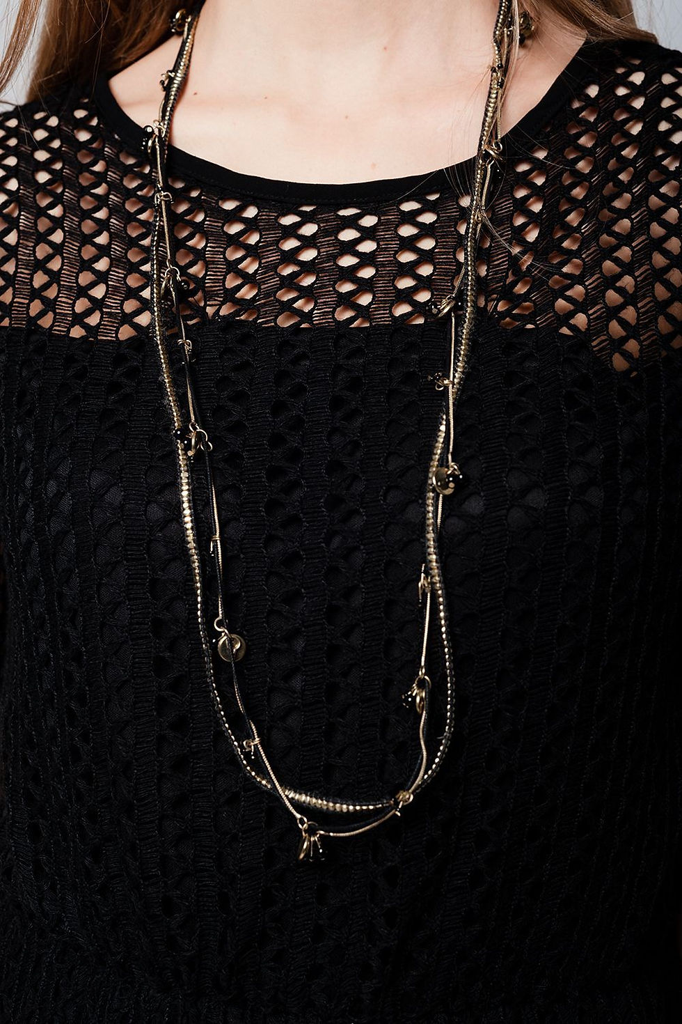 Black Multichain Necklace With Gold Details