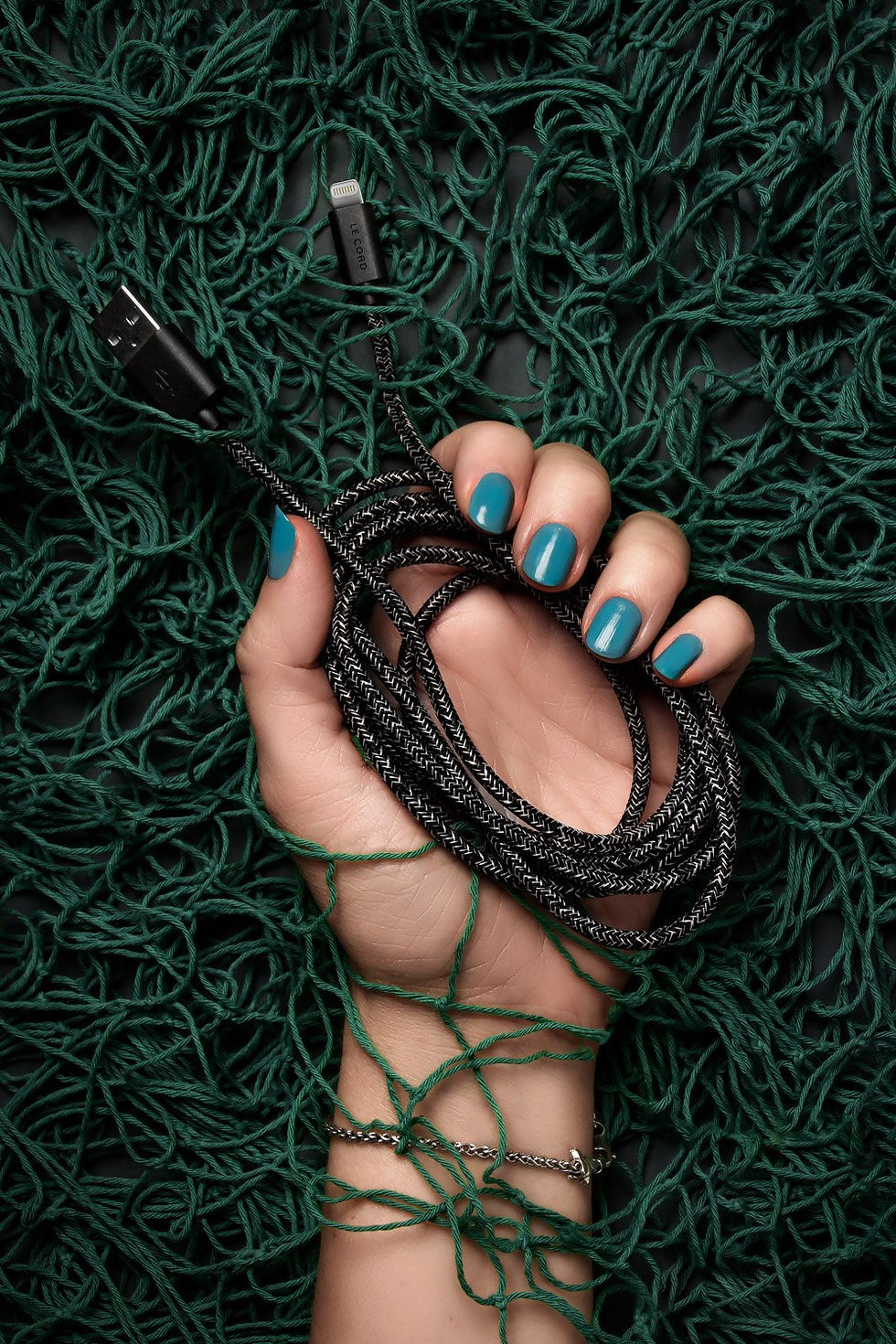 Black iPhone Lightning Cable · 2 Meter · Made of Recycled Fishing Nets