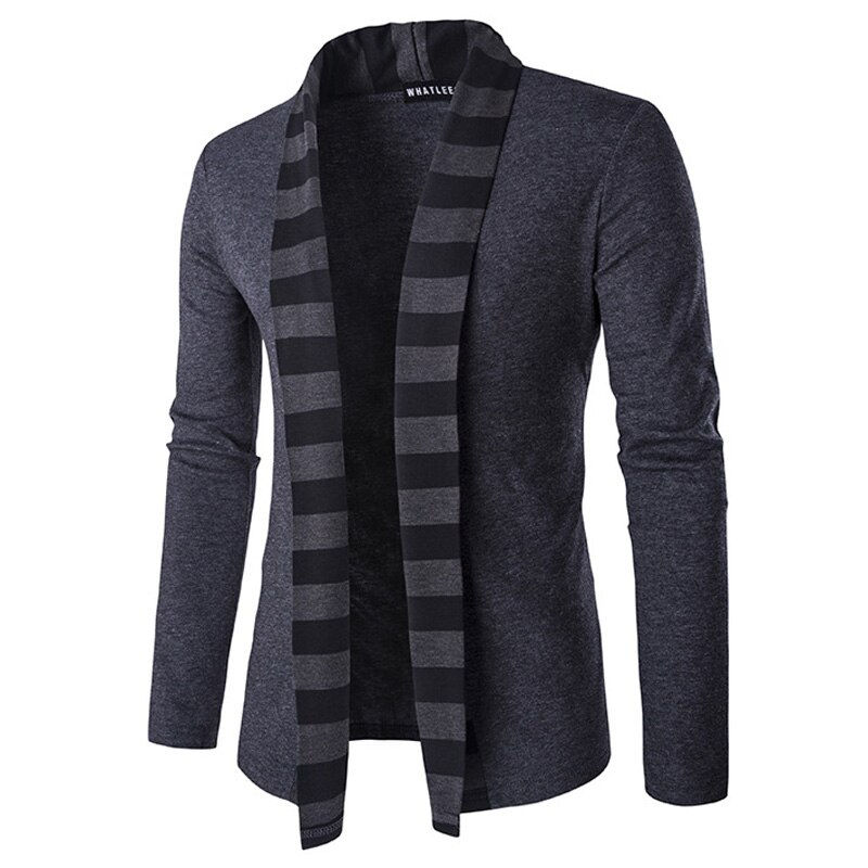 Black Cardigan Sweater Men Fashion Hit Color Stripe Neck Knitwear Cardigans
