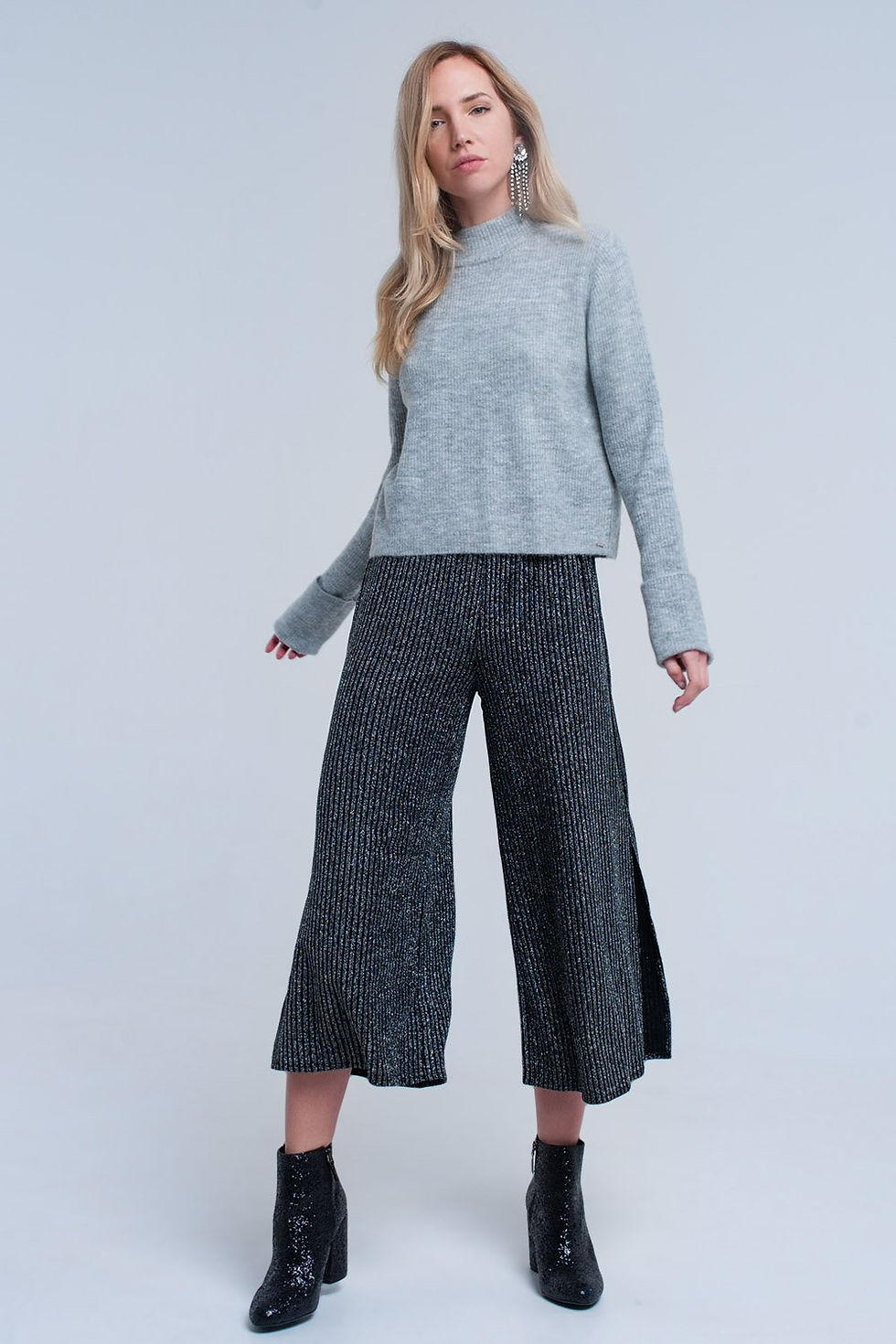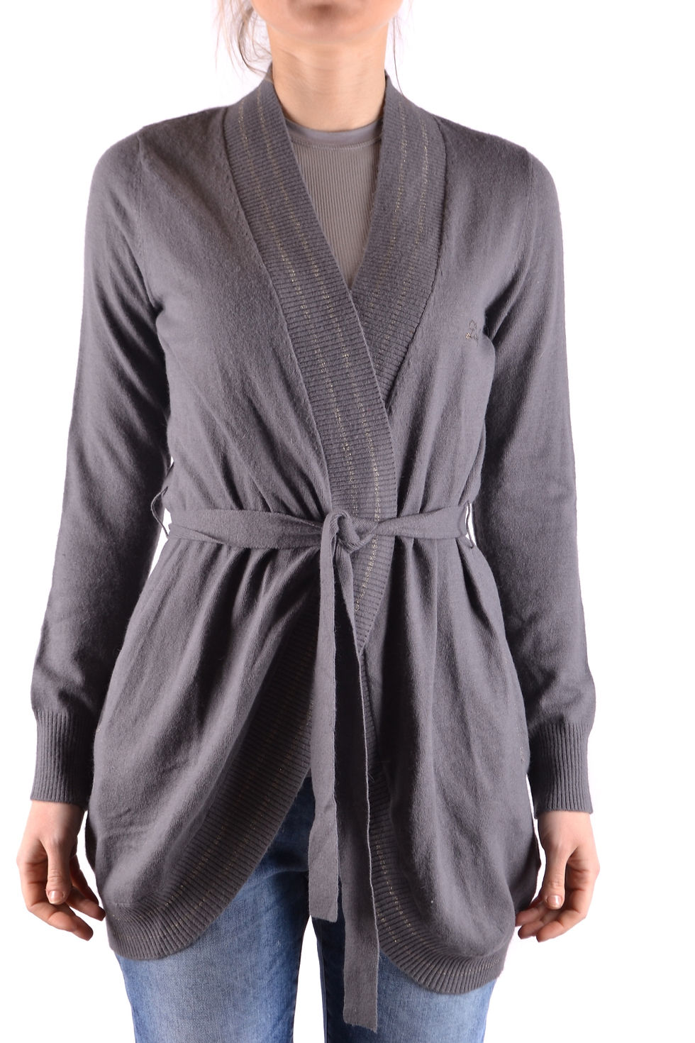 Light Gray Ribbed Wrap Sweater With V-Neck