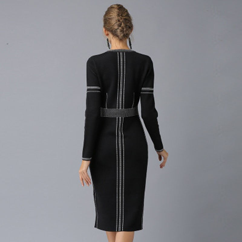 Split dressO-neck Long Sleeves Slim Black Dress Long Paragraph Vestido