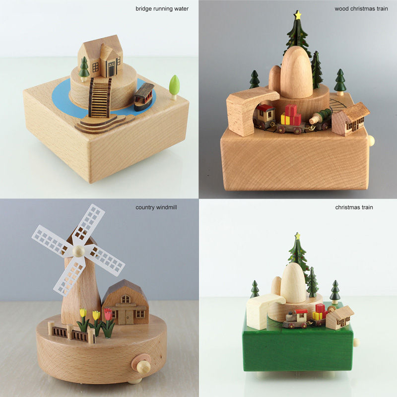 Vintage Chirstmas New Year Retro Birthday Gift Wooden Music Box Carousel Musical