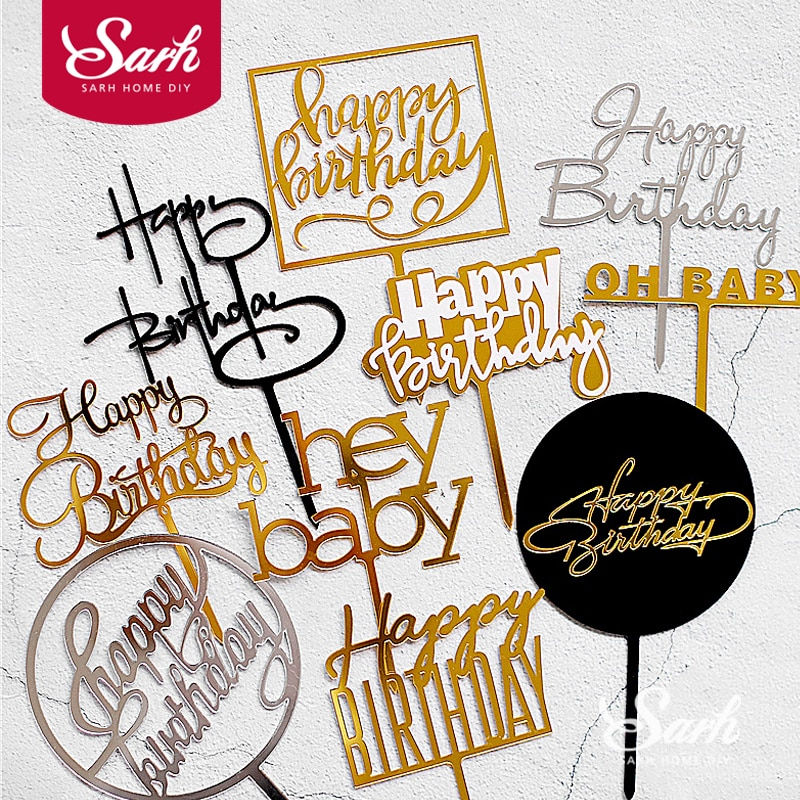 Gold "Oh Baby" "Happy Birthday" Hook Round Acrylic Cake Topper for Party