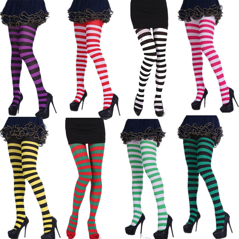 Christmas Tights Women Sexy Striped Pantyhose Xmas Cosplay Tights Winter Warm