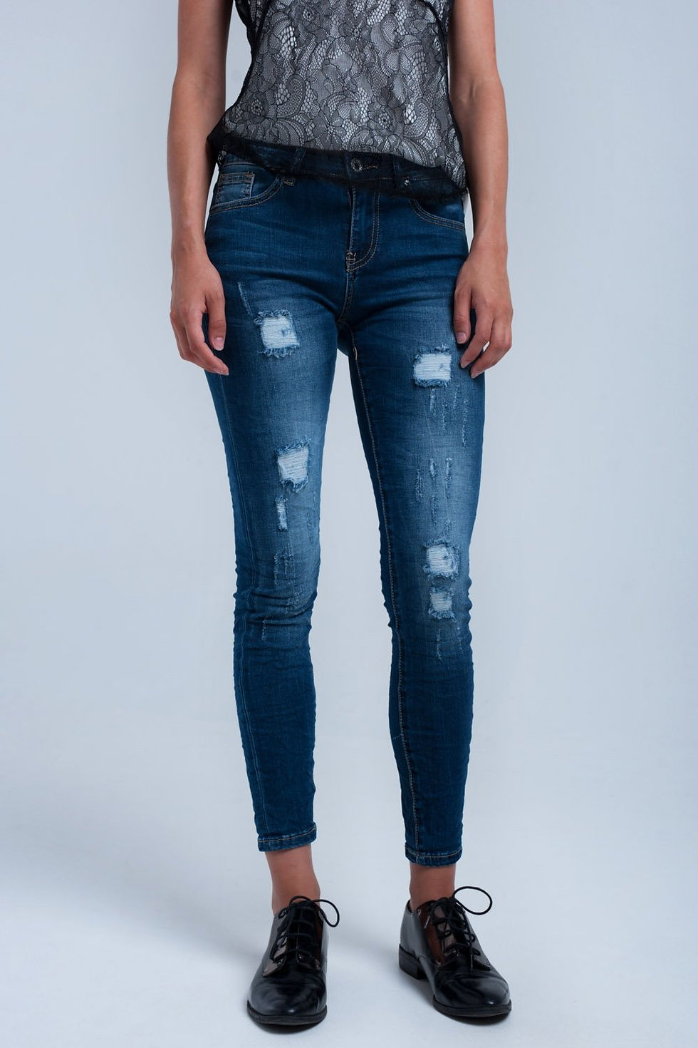 Fashion Streetwear Women Leggings Ladies Stretch Faded Ripped Slim Fit Skinny