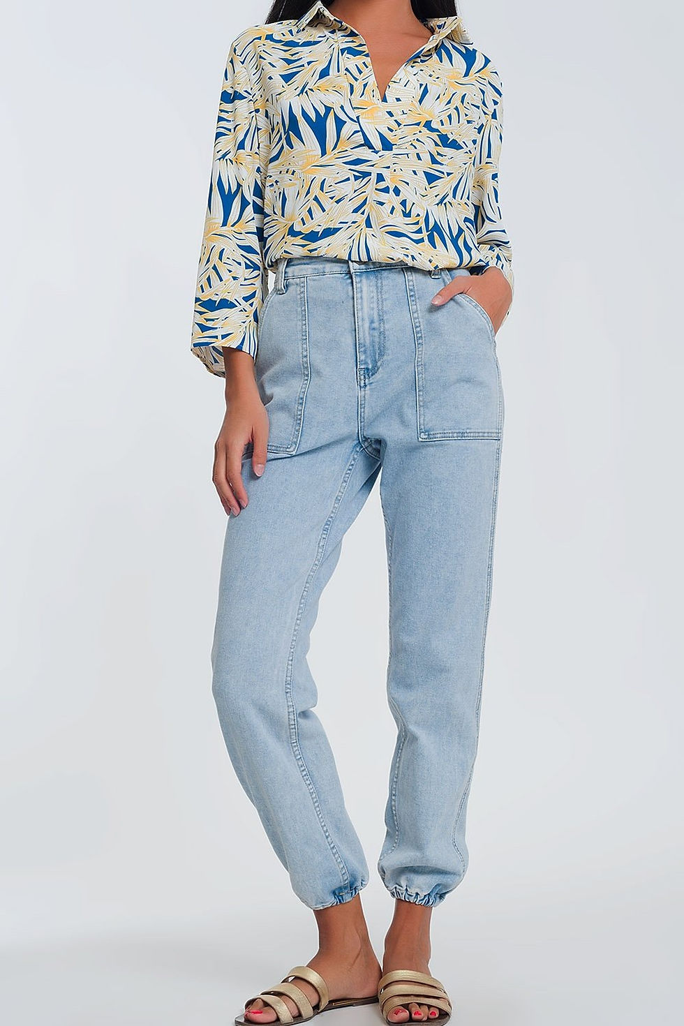 Plus Size Jeans Woman High Waist Stretch Pencil Elastic Blue MomJean Skinny