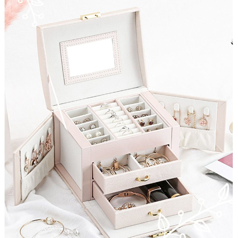 Jewelry Box Mirrored Large Capacity Jewelry Casket Makeup Organizer