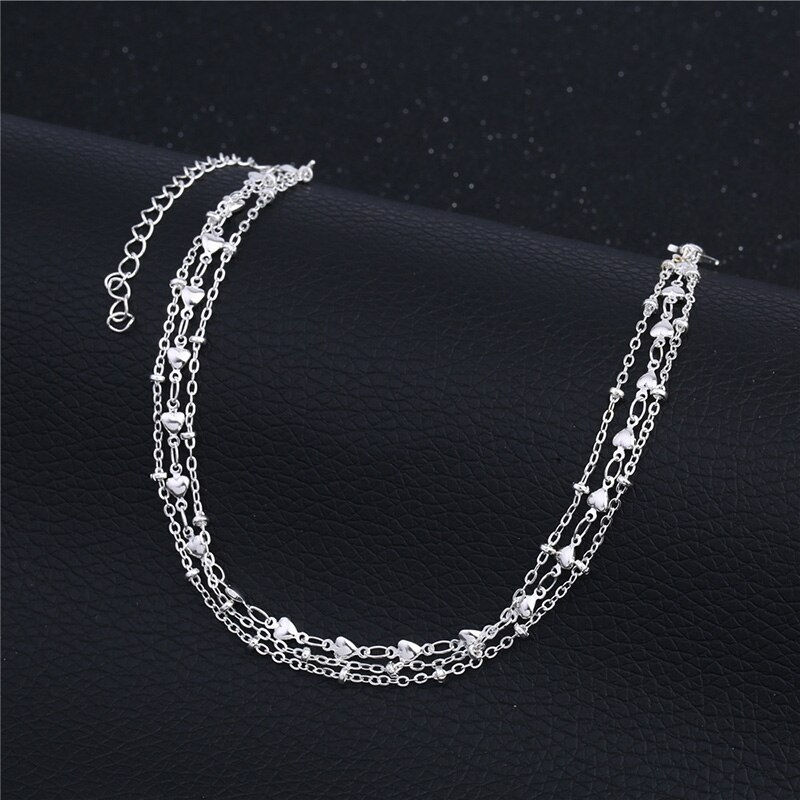 925 Real Sterling Silver Anklets Heart Charm Anklet Foot Bracelet Romantic