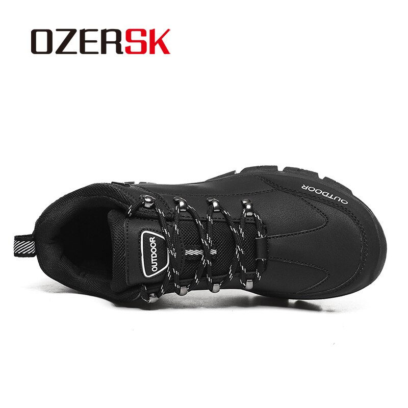 Leather Men Boots Lace Up Black Waterproof Military Ankle Boots Men Lightweight