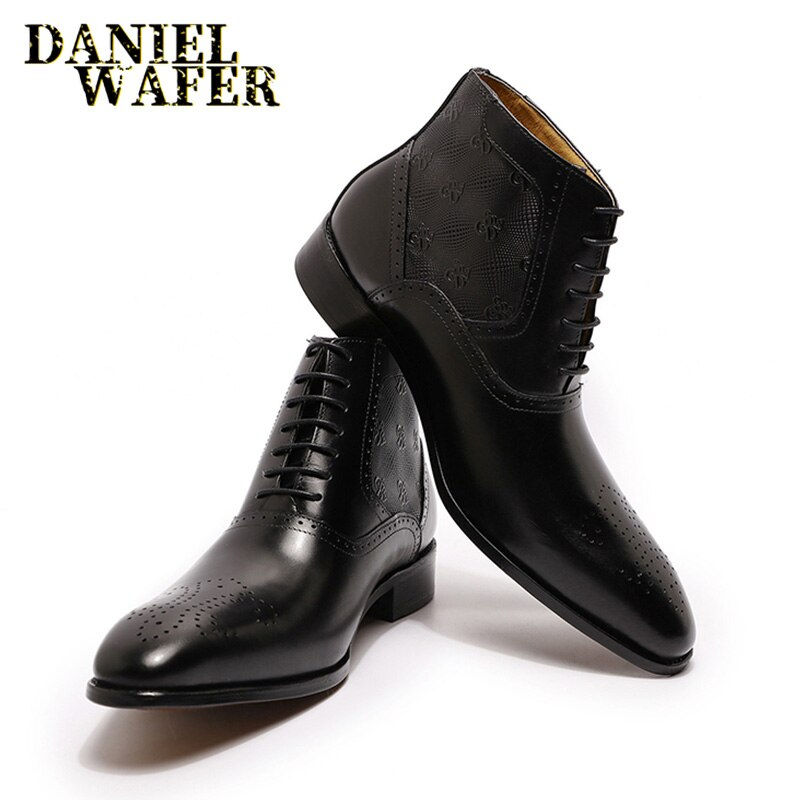 Retro Men Ankle Boots Genuine Leather Man Martins Boots Male Lace-Up Casual