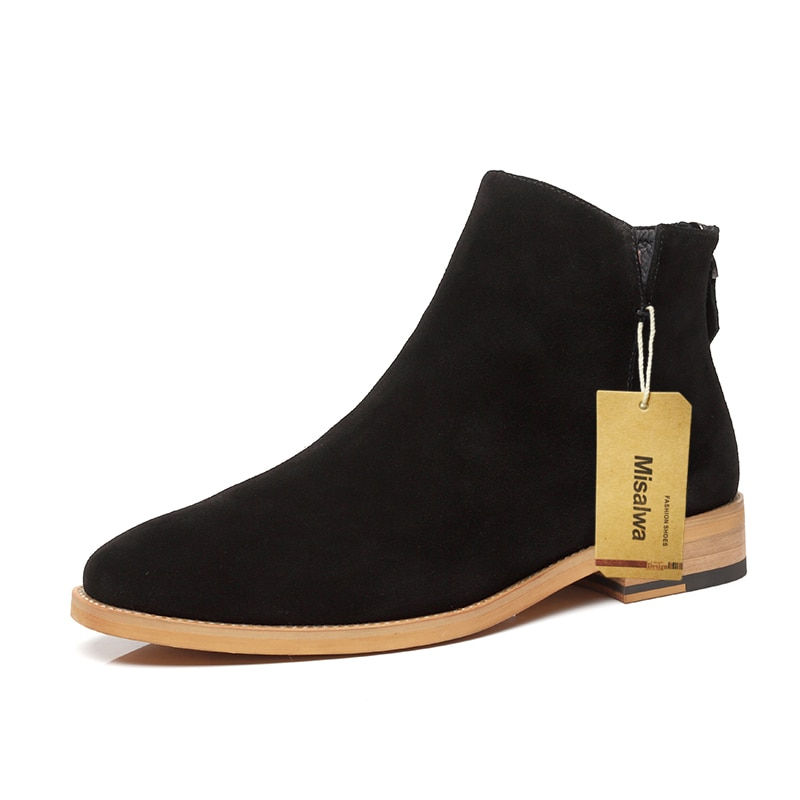 Men Suede Chelsea Boots Natural Leather Zip Pointed Toe Formal Ankle Boots