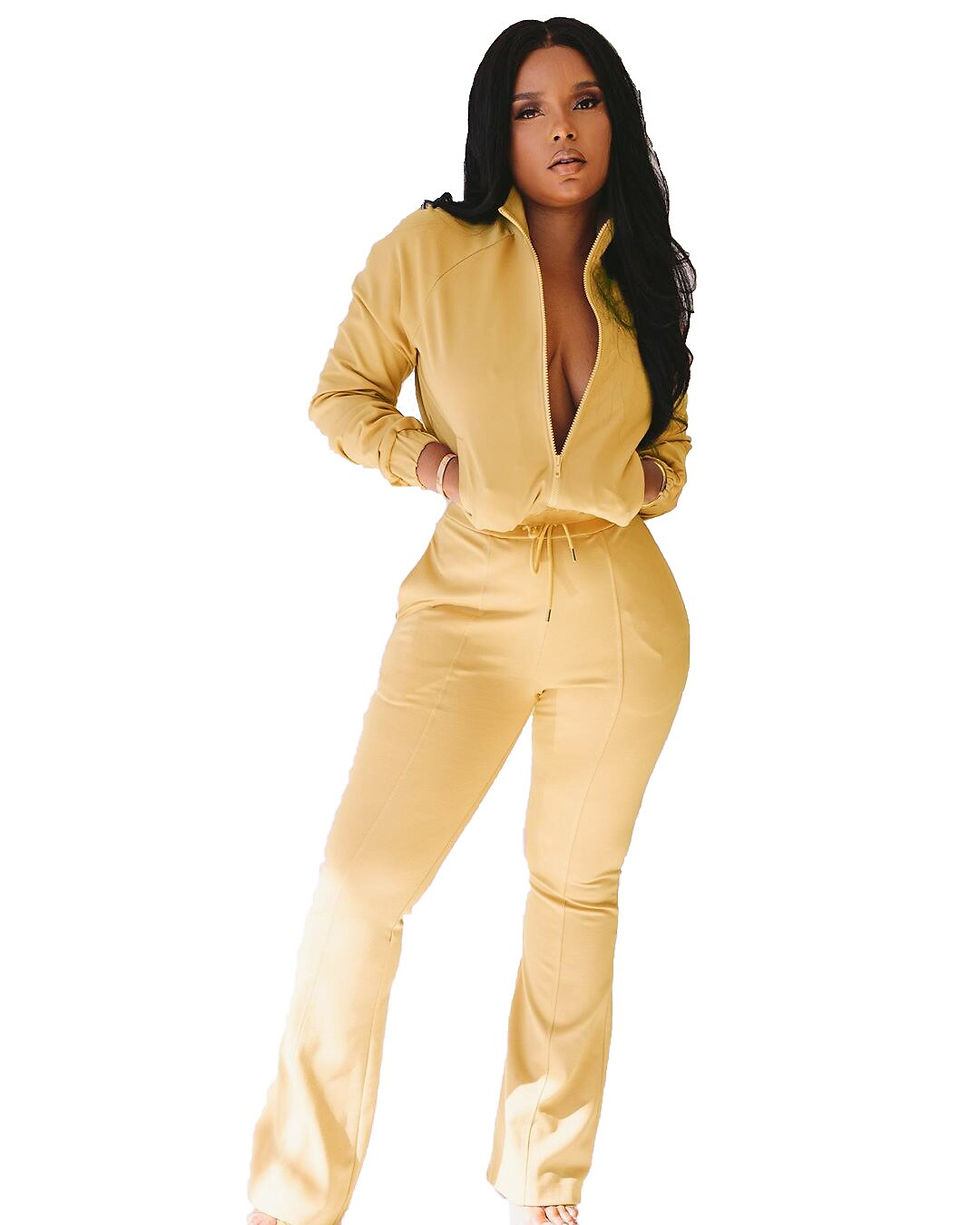 Two Piece Set Outfits Ladies Tracksuit Female Zipper Jackets Wide Leg Flare