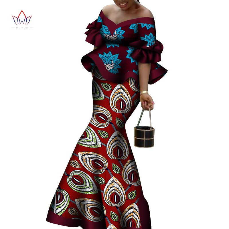 Two 2 Piece Set African Clothes Africa 2020 Dashiki Split Print African Dresses