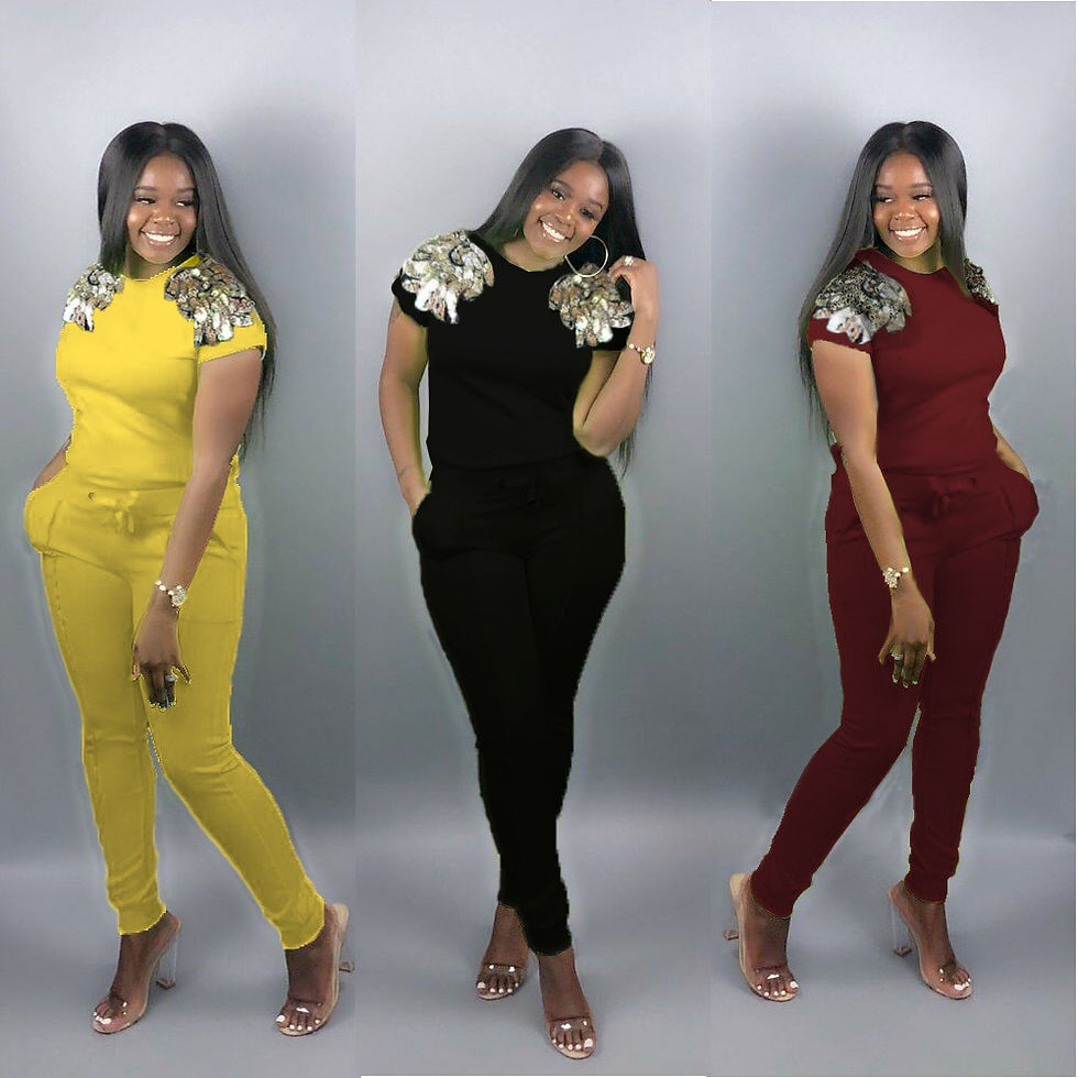Women Sequined Two Piece Set Casual Afrika Kleidung Summer Round Neck T-Shirts