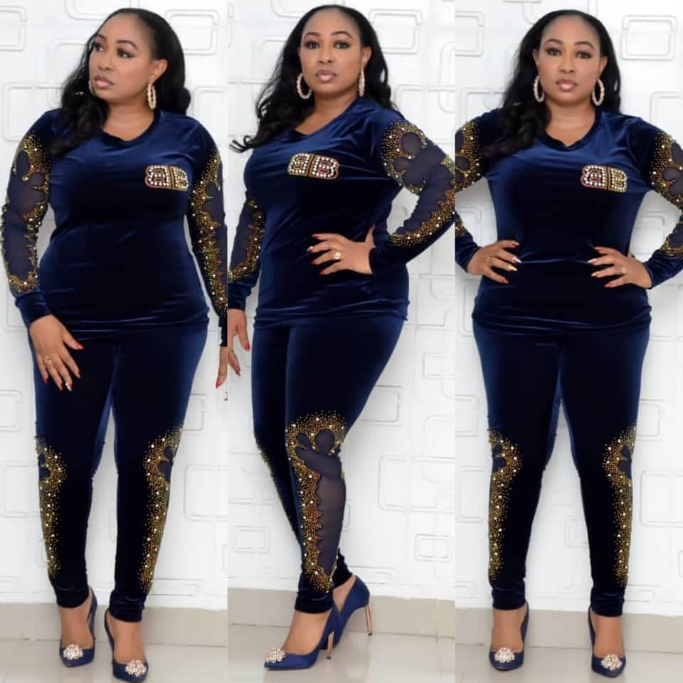 Velvet 2 Two Piece Set Fashion Style African Women Two Pieces Sets