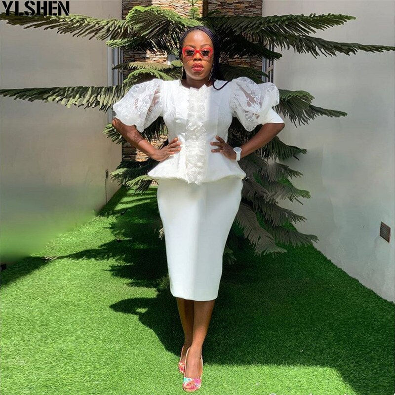 Two Piece Set Women Dashiki Africa Clothes African Dresses Tops Skirt Suits Lace