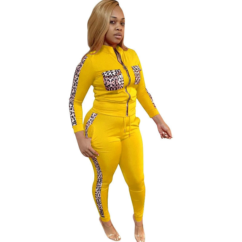 Two Piece Set Stand Collar Long Sleeve Jacket Coat Skinny Pants Sportswear